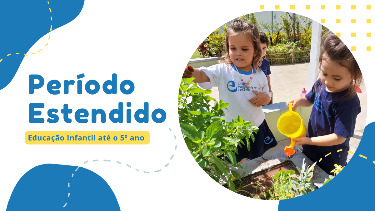 O nosso Período Estendido atende alunos do Minimaternal ao 5º ano do Ensino Fundamental Anos Iniciais. Receber os alunos com carinho e atenção, acolhendo os sentimentos e respeitando cada um, conquistando a confiança e oferecendo a segurança com afetividade.